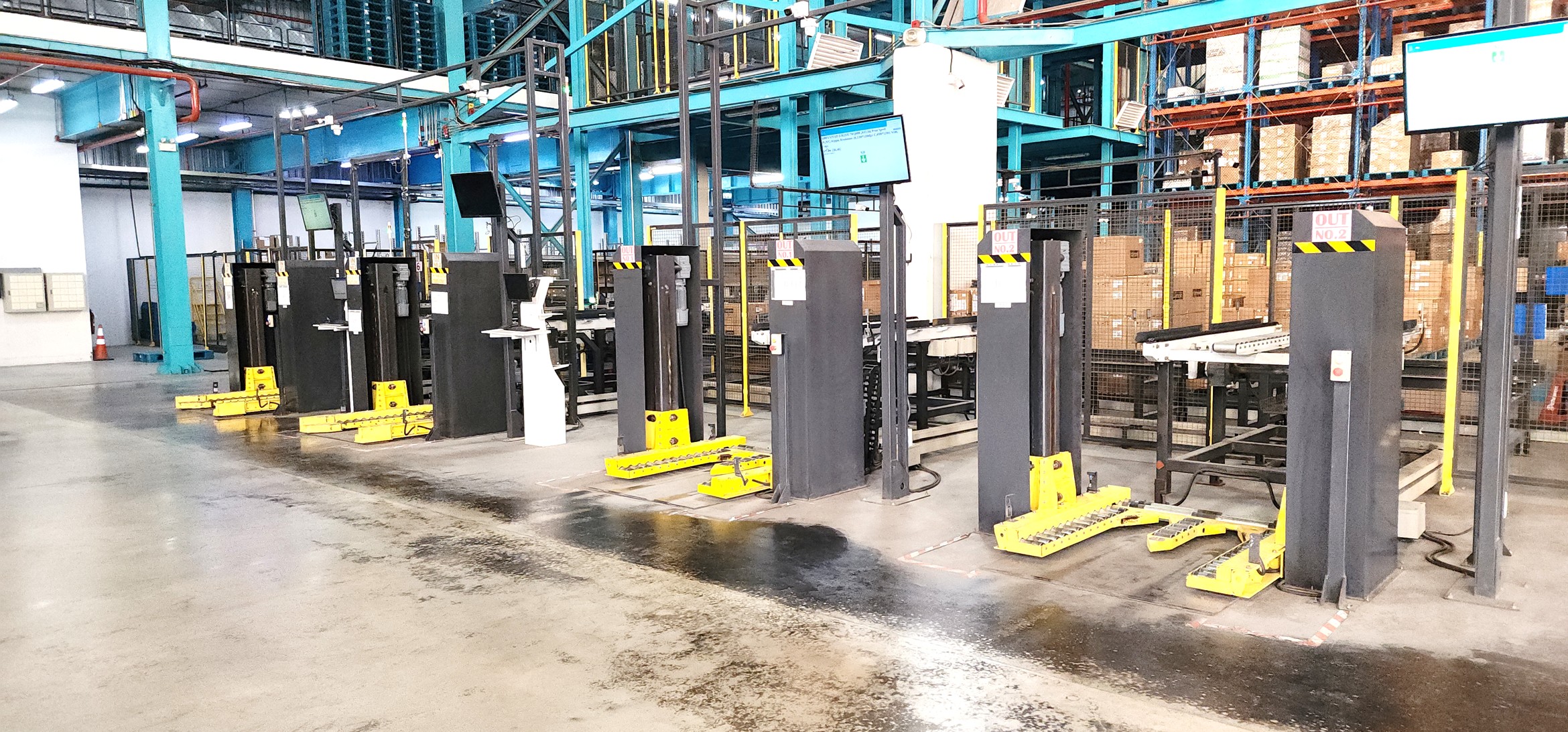 พาเลทสามารถหยิบขึ้นมาโดยใช้รถยกไฟฟ้าหรือรถยกพาเลทที่หน่วยป้อนเข้า